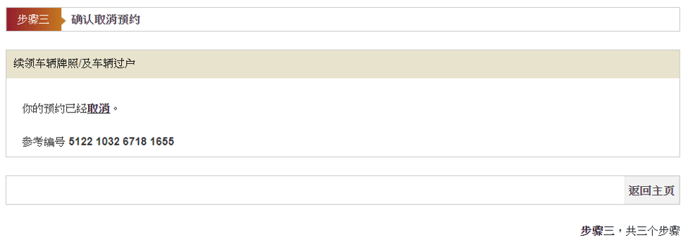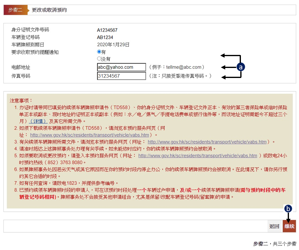 如需更改牌照事务处或预约日期及时间资料,按「更改」,然後去 步骤三.