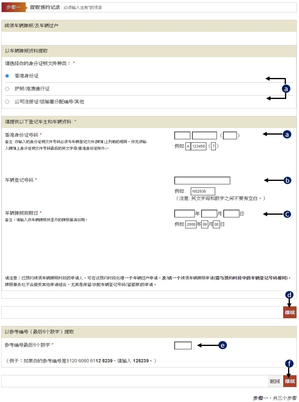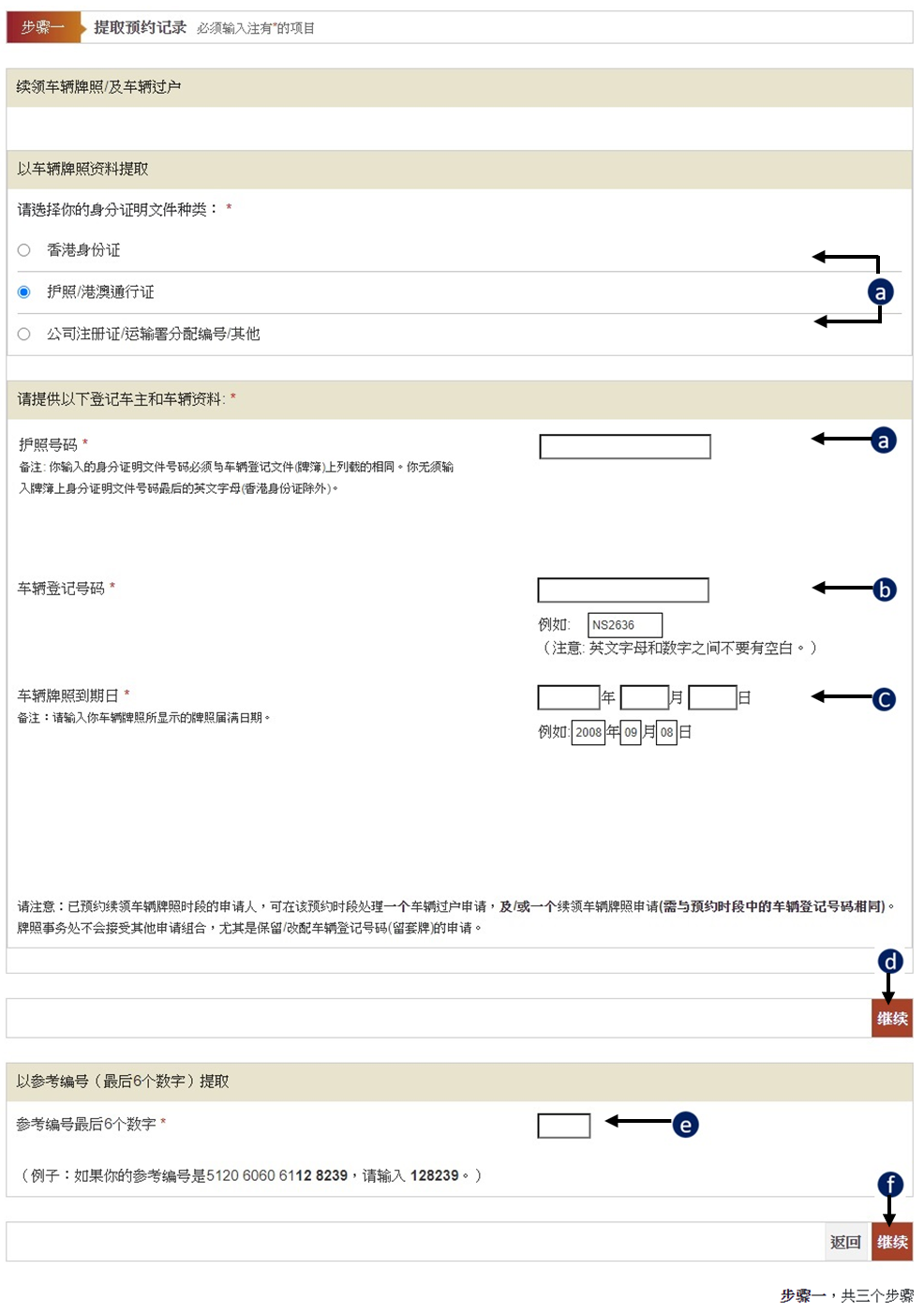 如果你有预约参考编号, 你可以按步骤 “e” 和 “f” 提取